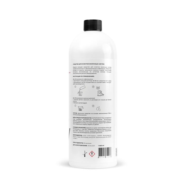 Жидкое моющее средство для очистки молочных систем профессиональных и автоматических кофемашин. Избавляет аппарат от молочных налета и камня, накипи. Уничтожает бактерии, возникающие из остатков молока. Очищает металлические детали оборудования