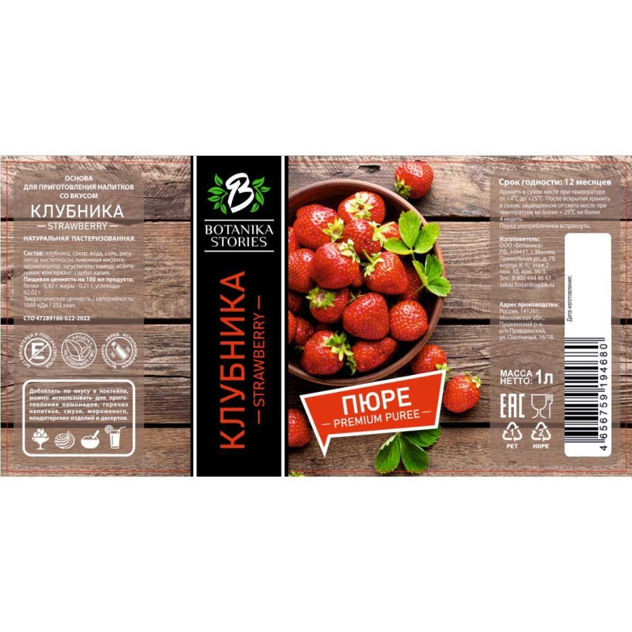 Пюре пастеризованное Botanika Stories Клубника 1 кг — это 100% натуральная основа с ярким вкусом спелой клубники для создания барных коктейлей, освежающих лимонадов, молочных коктейлей и десертов! Изготовленное из отборных ягод, пюре сохраняет насыщенный сладкий вкус и нежный аромат свежей клубники, делая его идеальным ингредиентом для смузи, мороженого, топпингов и выпечки.