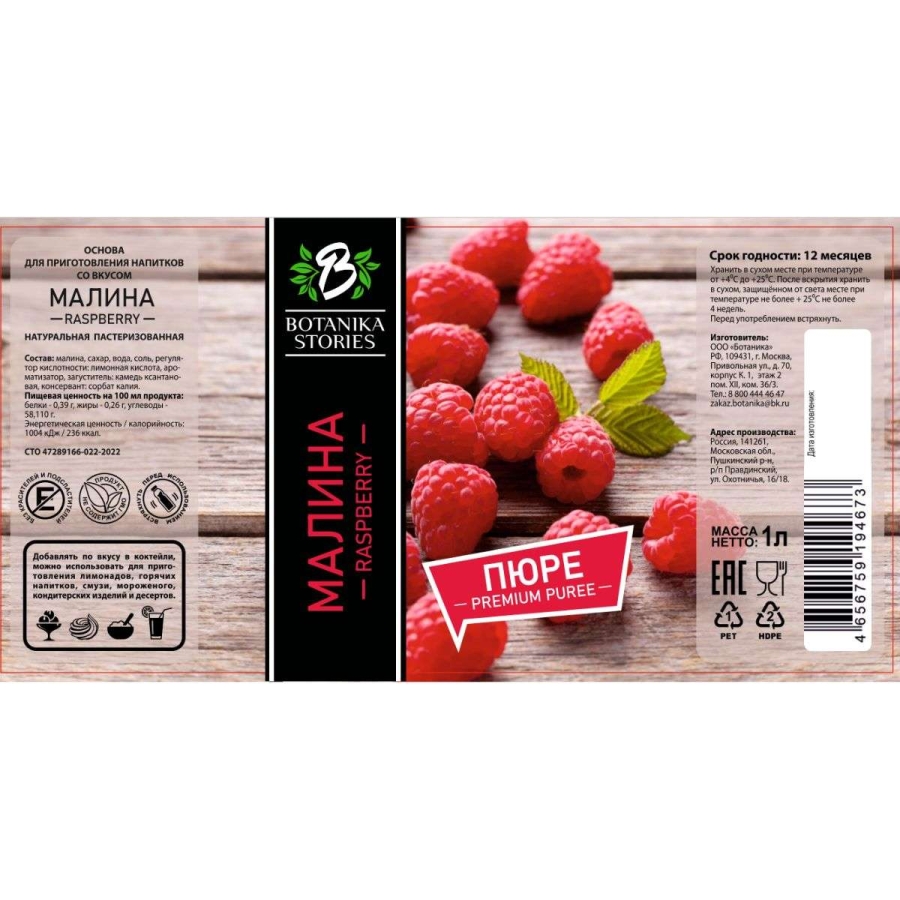 Пюре пастеризованное Botanika Stories Малина 1 кг — это 100% натуральная основа с насыщенным ягодным вкусом и нежным ароматом для создания ярких напитков и десертов! Изготовленное из отборной спелой малины, это пюре сохраняет всю пользу и интенсивный вкус свежих ягод, делая его идеальным ингредиентом для смузи, лимонадов, молочных коктейлей, сиропов, топпингов и даже выпечки.