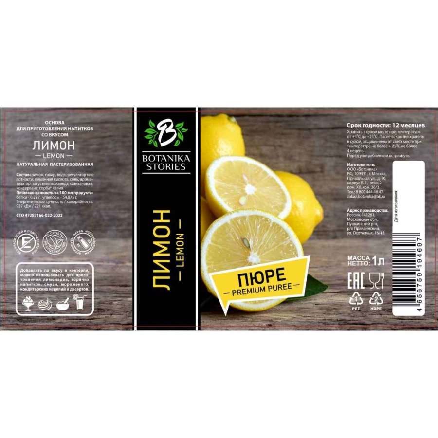 Пюре пастеризованное Botanika Stories Лимон 1 кг — идеальная основа для приготовления ярких и освежающих напитков! Это натуральное пюре высшего качества, созданное из отборных лимонов, сохраняет насыщенный вкус, аромат и полезные свойства фруктов. Густая и однородная текстура легко смешивается с водой, газировкой, чаем или алкогольными напитками, позволяя создавать лимонады, коктейли, смузи и десерты с идеально сбалансированной кислинкой и свежестью.